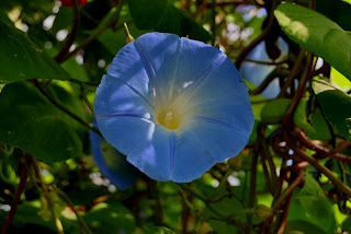 Anyone name this climber? They're everywhere here this year, but my long-suffering neighbours have failed to help me understand or deduce what its name is. Perhaps because its almost plastic blue is totally out of step with the golds, yellows and browns of the season, it's a real autumn eyecatcher along the SS34 Lago Maggiore road, and maybe one might also be nice climbing a Carmine fence next year...